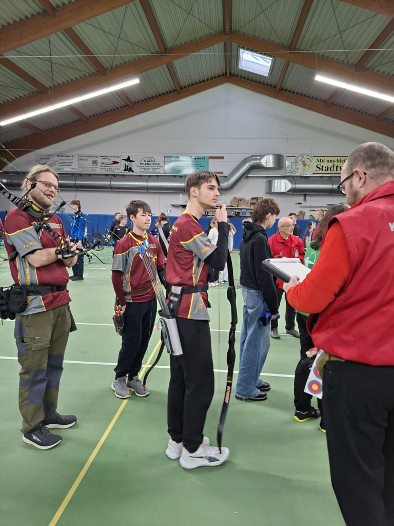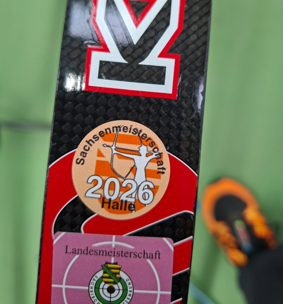 Als erstes hieß es, Material aufbauen und ab zur Bogenkontrolle. Die ist super gelaufen Alle unsere Schützen kamen ohne Beanstandungen, ohne Nacharbeit durch und erhielten ihre Klebemarke „Landesmeisterschaft 2026“.
