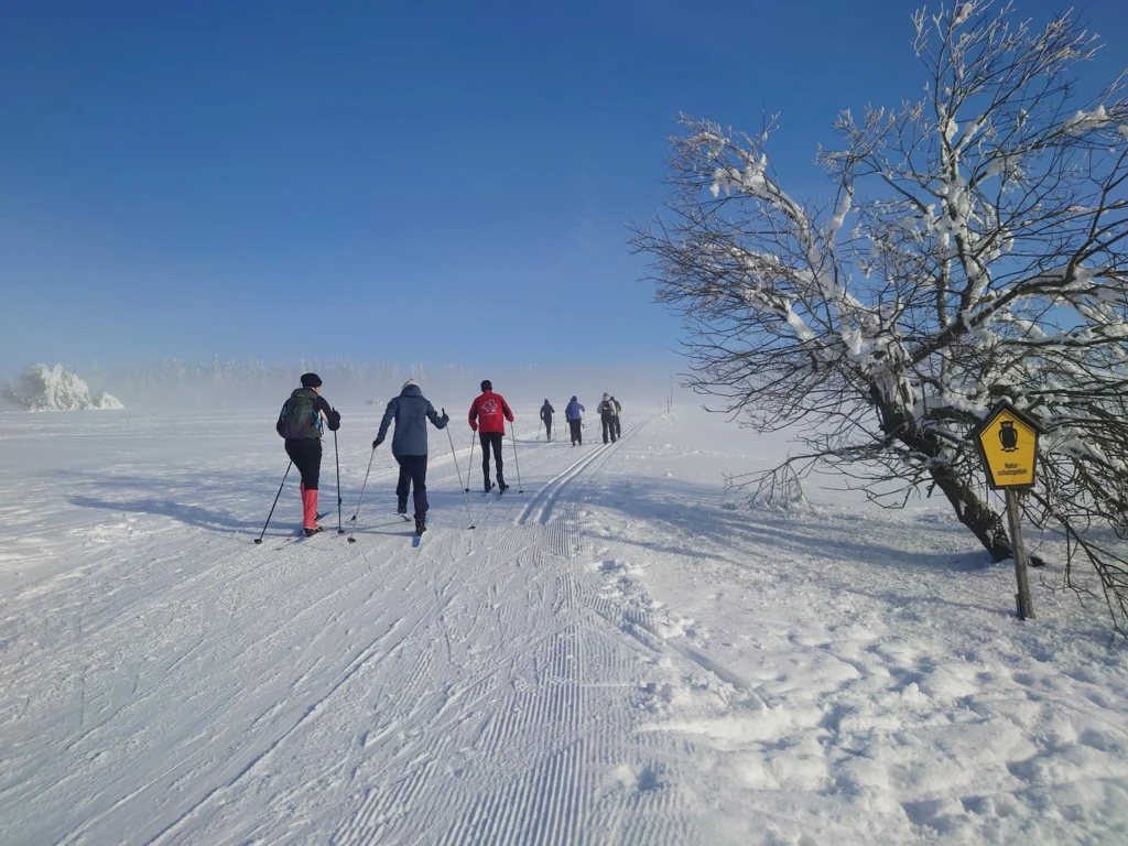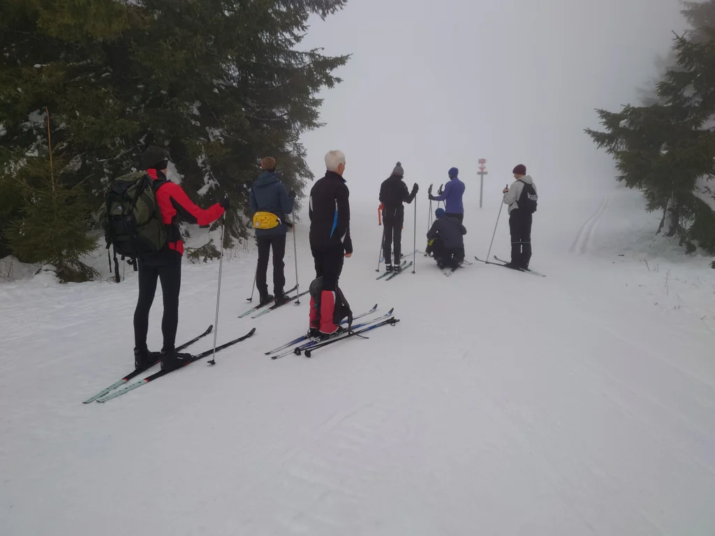 Danach erfolgte die Aufteilung in 2 Gruppen, routinierte Langläufer und Anfänger bzw. Langläufer mit wenig Übung. Die Biathlontrainingsloipen des Olympiatrainingszentrums und die Loipen rund um den Fichtelberg erfordern von jedem Läufer ein sicheres Beherrschen der Ski, damit die Kurse gefahrlos gemeistert werden können und rasante Abfahrten nicht an oder zwischen den Bäumen enden.